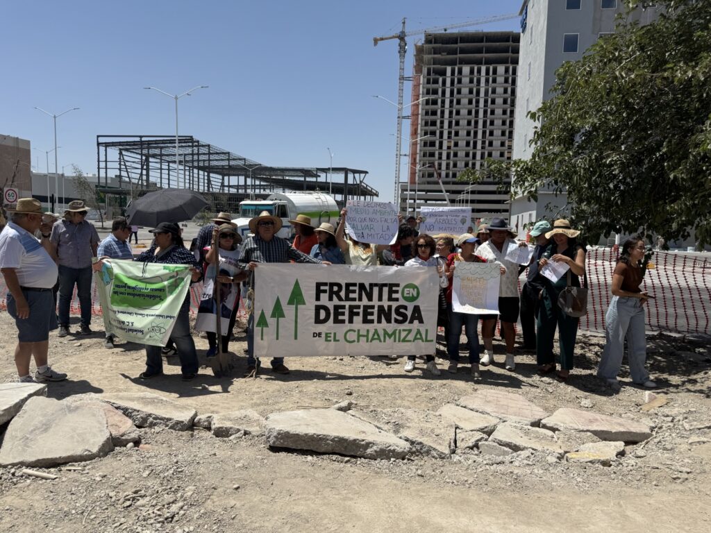 Los manifestantes plantaron dos huizaches para reponer el daño ocasionado por la constructora que pretende realizar en el lugar un retorno.