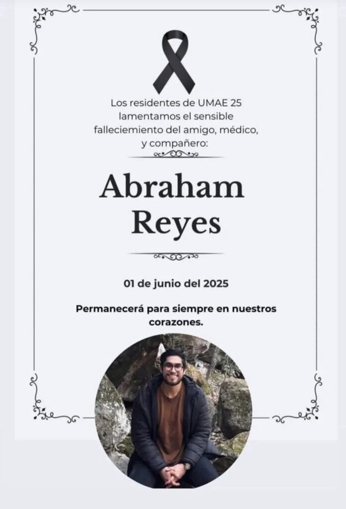 Chihuahua.- La muerte del médico residente Abraham Reyes, originario de Delicias Chihuahua, causó consternación en el estado, luego de que sus compañeros difundieron que el profesionista decidió quitarse la vida ante la desesperación que sintió por las malas condiciones laborales que tenía en el IMSS.