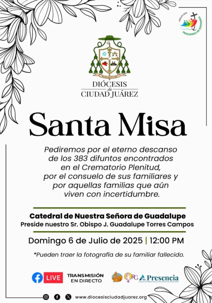 El obispo de la Diócesis de Juárez, José Guadalupe Torres Campos pidió por cada una de esas 383 personas, insistiendo durante la homilía que la dignidad de los seres humanos va más allá de la muerte.