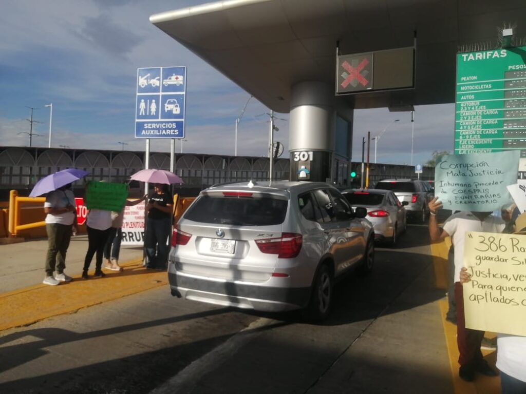 Desde las 5:00 hasta las 7:00 de la tarde, las aproximadamente 15 personas del colectivo Justicia para nuestros deudos, levantaron las plumas de la caseta de cobro para dejar libre el paso vehicular.