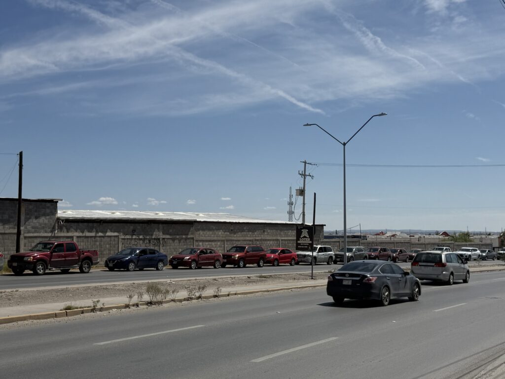 Uno de estos centros es el que se encuentra en la avenida Manuel J. Clouthier en la colonia Salvarcar, en el que se observó una fila vehicular de más de un kilómetro, ya que abarca desde la calle Tlaxcala hasta el Camino a la Rosita.