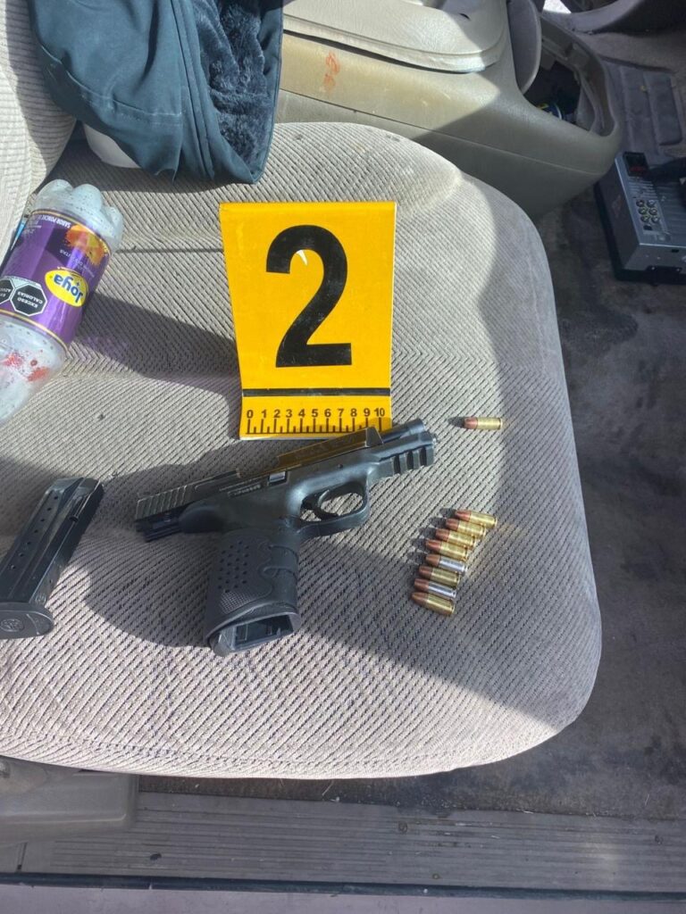 Derivado de esta acción, el vehículo fue localizado en el fraccionamiento Villas de Salvarcar, donde autoridades ministeriales y periciales llevaron a cabo las diligencias correspondientes, localizando en su interior un arma de fuego. El vehículo fue puesto a disposición de las autoridades competentes para continuar con las investigaciones.