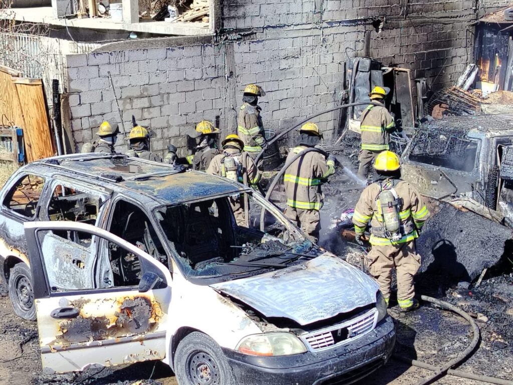 El fuego consumió además dos vehículos que estaban estacionados en la parte frontal de la vivienda.
