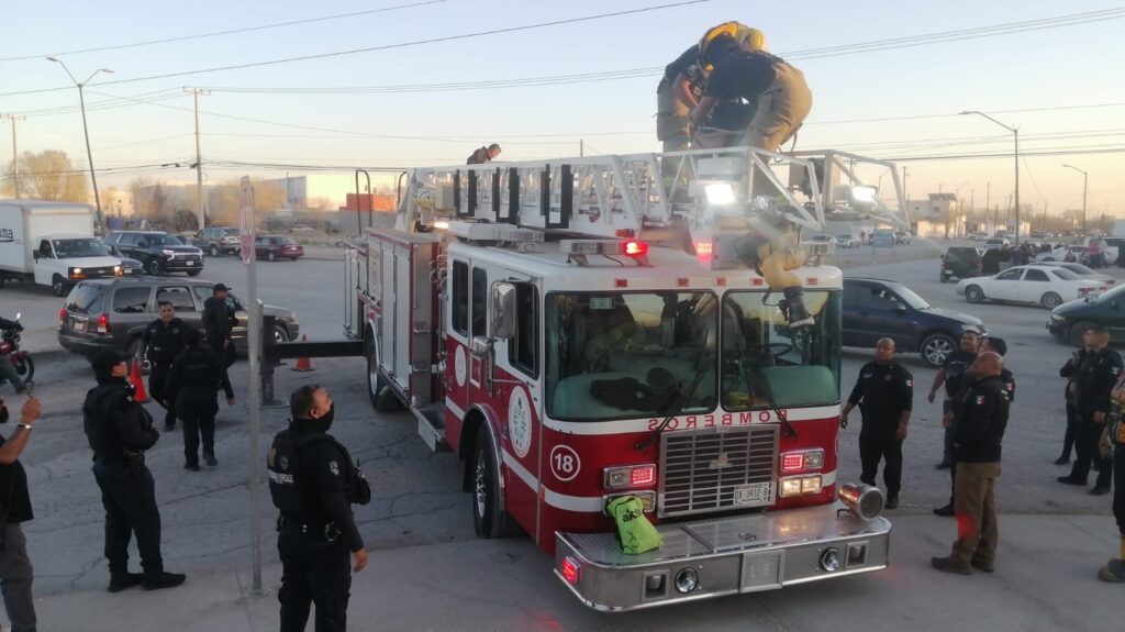 Ciudad Juárez.- Tras intensas labores por parte de elementos de Bomberos, Protección Civil y de la Policía Municipal, se logró el rescate de un hombre que pretendía lanzarse de una estructura metálica.