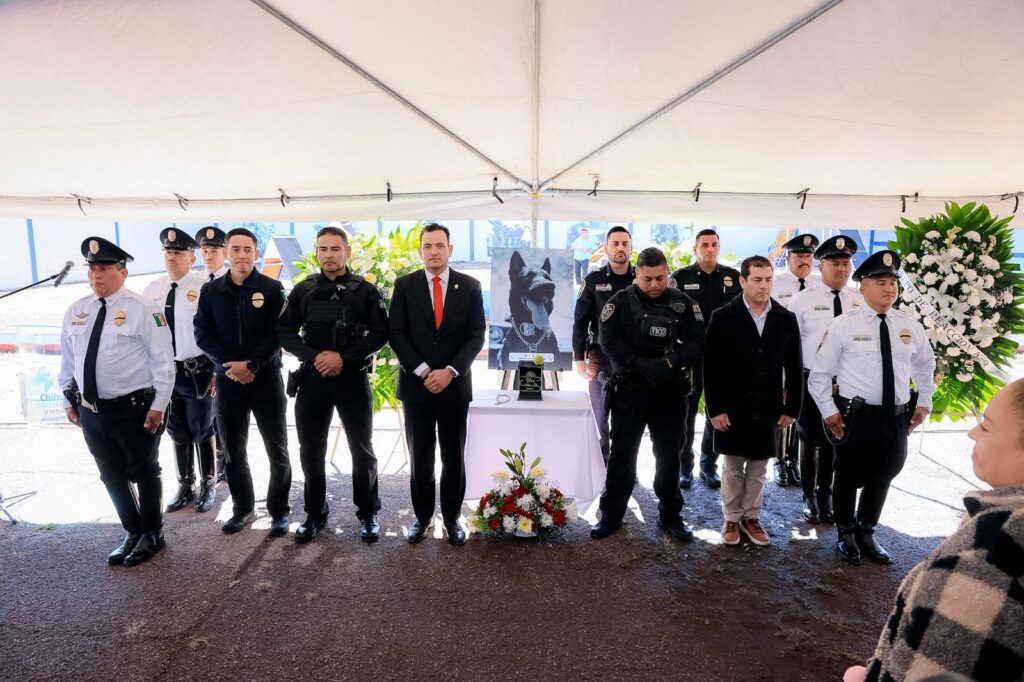 Chihuahua.- Con disparos de balas de salva, encendido de sirenas y una guardia de honor encabezada por el alcalde de la ciudad de Chihuahua, Marco Bonilla, fue despedido como todo un héroe, Vico, el perro policía que falleció en cumplimiento del deber.